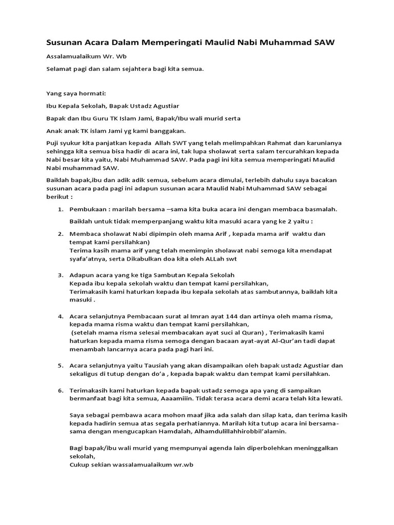 maulid nabi muhammad saw merupakan peringatan hari besar islam lahirnya rasulullah yang jatuh pada tanggal 12 rabiul awal tahun gajah. Contoh pidato untuk anak sd sebuah pidato yang akan disampaikan pastinya harus memiliki porsi yang sesuaikan dengan siapa penyampai pidaro tersebut dan kepada siapa pidato tersebut akan disampaikan. Ul awwal ini populer dengan sebutan bulan mulud. Judul dari pidato ini adalah \" Biasanya, dalam susunan ini didahului dengan pembukaan yang diisi dengan sambutan pidato tentang maulid nabi.